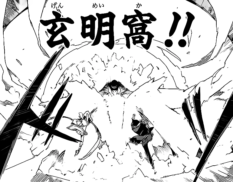 Excitedly, Kagetane releases his Maximum Pain as he questions whose Varanium is strongest, telling Rentaro to perish. Releasing his cartridge, Rentaro employs his Tendo Combat Style along with the technique Rokuro Kabuto, demolishing Kagetane's Maximum Pain and Repulsion Shield in a single punch. Kohina witnesses this, rushing to her father's side, but Enju steps in just in time to stop her Short Swords from reaching Rentaro. Enju grabs Rentaro and tells him that it is time to go, as Kagetane begins to shoot at them with his two guns with adrenaline rushing through his blood. They come to a stop and Enju tells Rentaro to prepare for their next attack as she rushes towards Kohina.