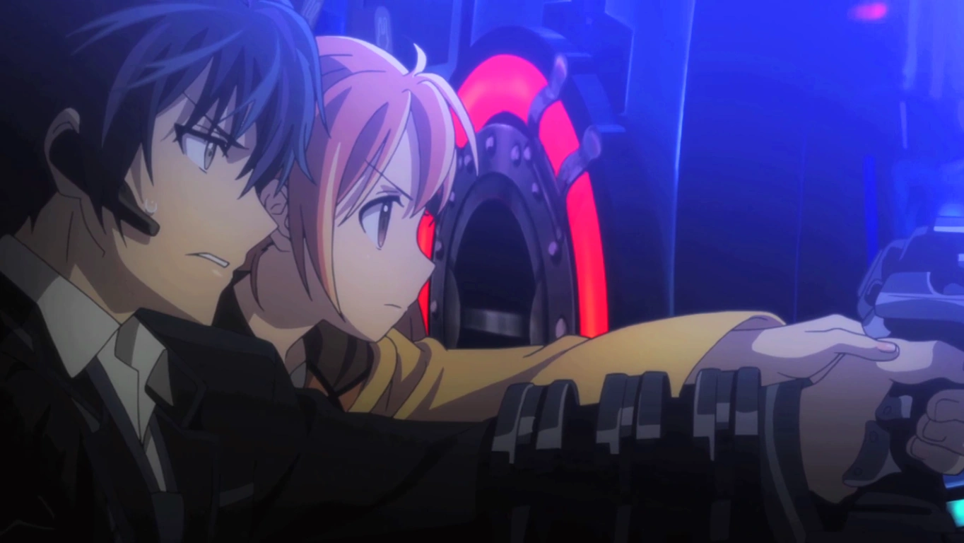 Rentaro and Enju prepare to fire the railgun.