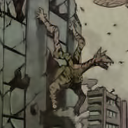 Utilizing two of its limbs to hold its body against a collapsing building, the Giraffe Gastrea fights the humans in the Great Gastrea War of the year 2021. Albeit arising victorious, the Giraffe Gastrea's status presently remains a mystery.[1]