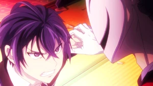 Sometime later, after returning to Tendo Civil Security Corporation and being informed by Kisara Tendo that the source has yet to be found,[6] Rentaro and the latter are summoned by Seitenshi to a meeting at the Ministry of Defense.[7] At the meeting, they converse about the Original Gastrea and the object presumed to be inside its belly. However, during the meeting, the masked man, revealing his name to be Kagetane Hiruko, appears and wreaks havoc within the room—declaring himself Civil Security's enemy and admitting that he is after the same object: the Legacy of the Seven Stars. Once the man and his daughter Kohina Hiruko leave, Seitenshi claims that they must obtain the Legacy of the Seven Stars before Kagetane does, as it could bring upon absolute destruction to the Tokyo Area.[8] Shortly thereafter, Kagetane encounters Rentaro once again in the middle of the night after the young Promoter leaves the hospital, proposing the latter a tempting offer.[9]