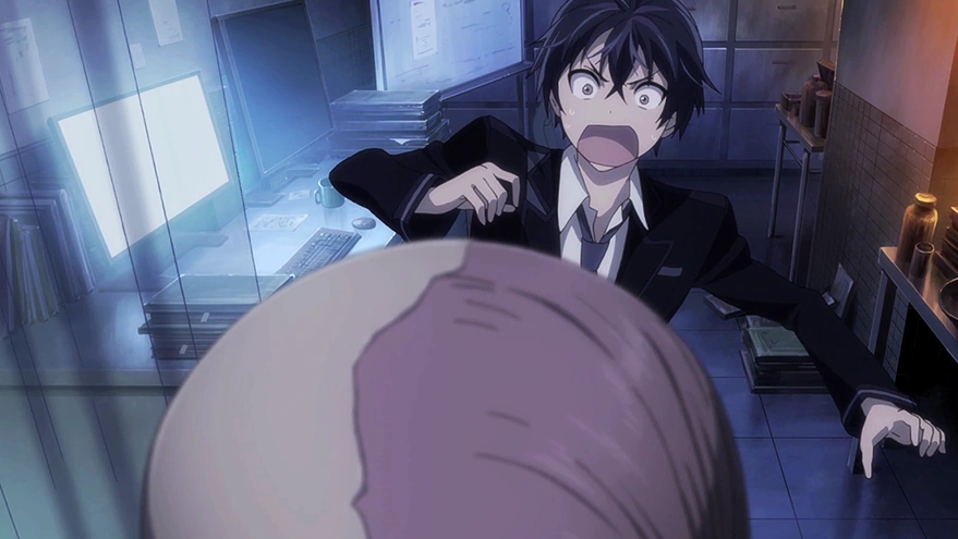 Whilst scratching the back of his head, Rentaro is asked by Tadashima if he is truly the Civil Security Corporation member they sent as reinforcement, to which he responds affirmatively and states that if he does not believe him he will just return home. However, he is then questioned by Tadashima to show him his license, which he does, and quickly receives it back as the latter confirms his statement. Commencing the operation, Tadashima informs Rentaro that on the second floor, where the accident happened, the roof was leaking blood. Quietly standing behind the man, Rentaro is told that it's thanks to him that they will be able to investigate the crime scene further, aiding him to enter the building. Along the way, he is asked what happened to his Initiator, causing him to shudder and remember said person fall from his bike on the way to his current location. Afterwards, when they arrive to the room, Tadashima confronts one of his men for entering the room without permission, but Rentaro simply shakes it off and, taking a hold of Tadashima's shoulder, orders him to stand to the side as he will enter the room.[17]