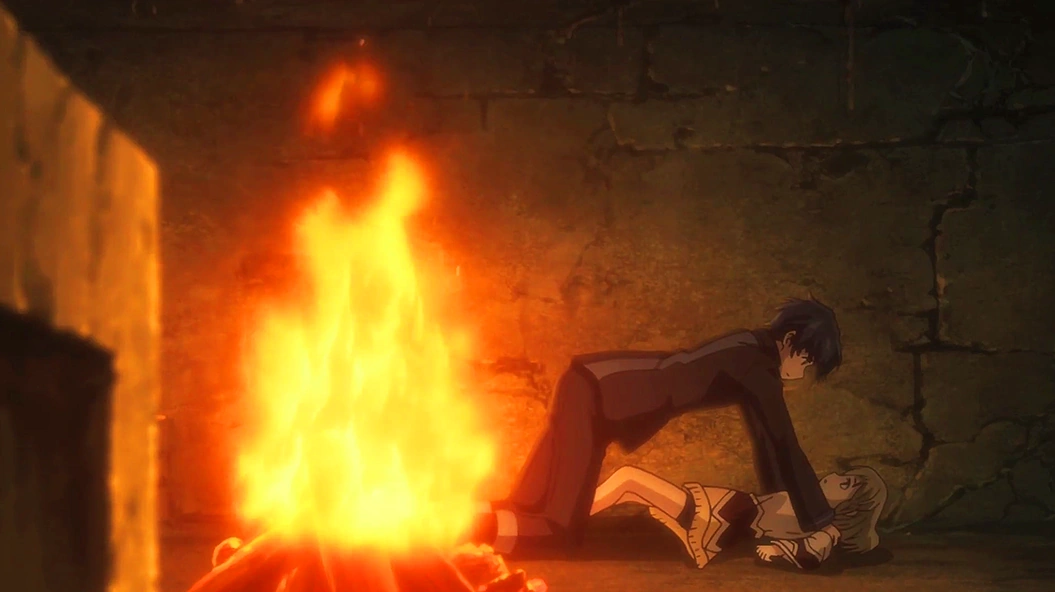 Angered by her words, he clenches his fist and states that she is wrong, claiming that they are not tools. When suddenly, he is asked if he has ever killed anyone before, as she has, which angers him further. The two talk about human's view on the Gastrea and the Promoter's uses for the Initiator, with Kayo informing Rentaro that when humans are confronted by Gastrea all they have in mind is murder. However, before she can continue, Rentaro grabs her and pins her on the ground, informing her of the time Enju almost killed a person: she waited for the person to recover. Kayo interrupts him and claims that his words are just mere words, but that she does not want to deny them. Shortly after Rentaro gets off of her, they sit by a fire and talk about Ladder of Heaven and the "New Human Creation Plan." As they continue to converse, Kayo gets a call from Shougen, who tells her that they have located Kagetane, quickly heading out with Rentaro and Enju after getting her things ready.[52]